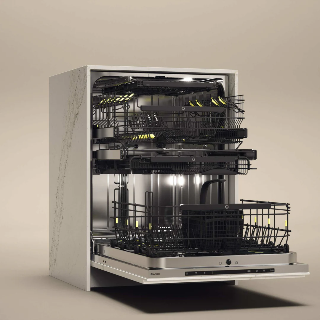Mittelkorb: Einzigartig bei ASKO – perfekt für kleine Tassen, Schüsseln und Kochutensilien, mit eigenem Sprüharm und Teleskopschienen.
