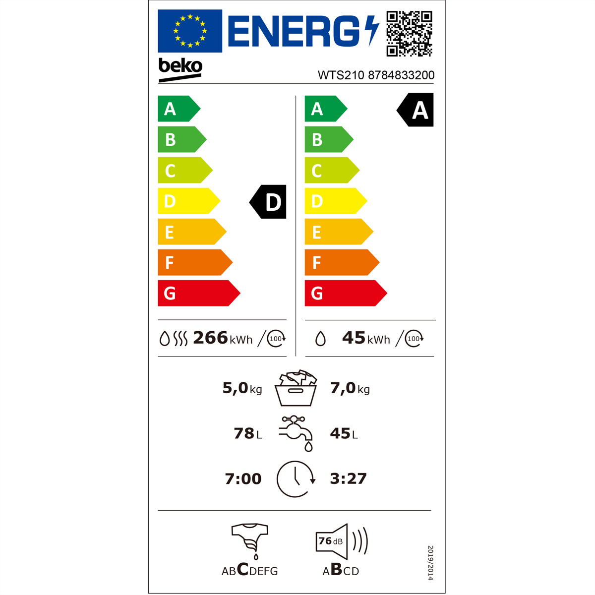 Der Beko Waschtrockner WTS210 bietet eine leistungsstarke Kombination aus Waschen und Trocknen in einem Gerät. Mit einer Waschkapazität von 7 kg und einer Trocknungskapazität von 5 kg sorgt er für bequeme, platzsparende Wäschepflege und überzeugt durch energieeffiziente Funktionen und einfache Bedienbarkeit.