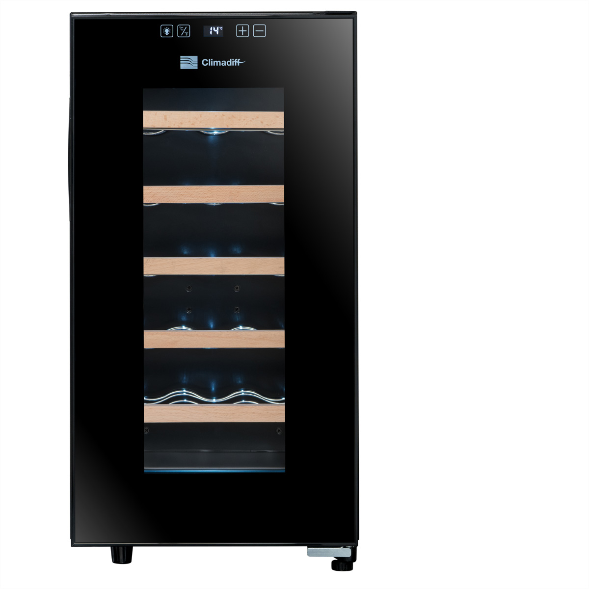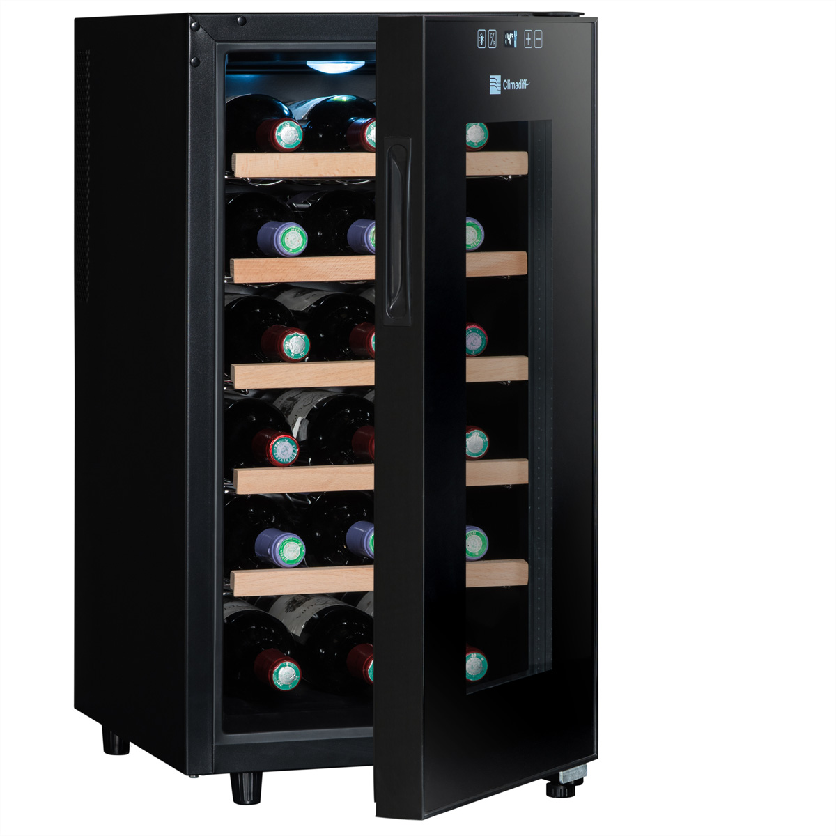 Der Climadiff CC18F Ein-Zonen-Weinkühlschrank ermöglicht die Aufbewahrung von bis 18 Flaschen unter den besten Bedingungen.