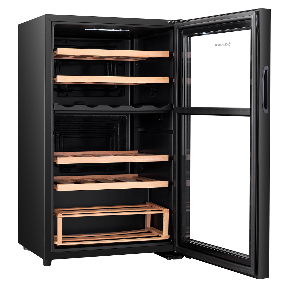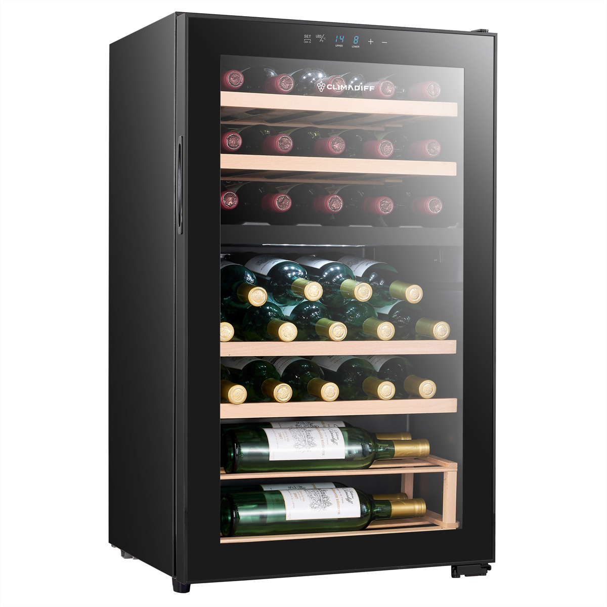 Der Climadiff Weinkühlschrank CEPAGE33DZ bietet optimale Lagerbedingungen für bis zu 33 Flaschen mit zwei getrennten Temperaturzonen und stilvollem freistehenden Design.