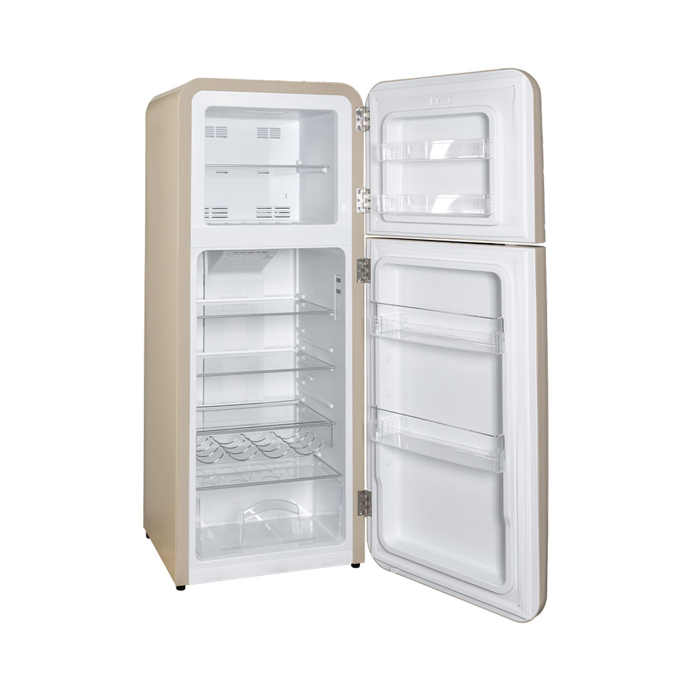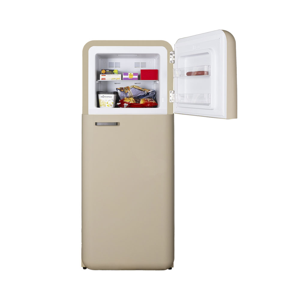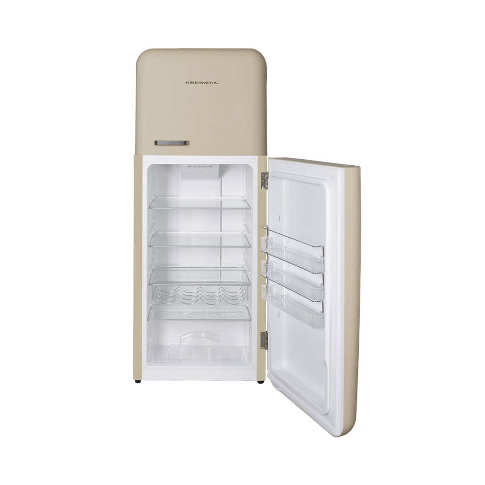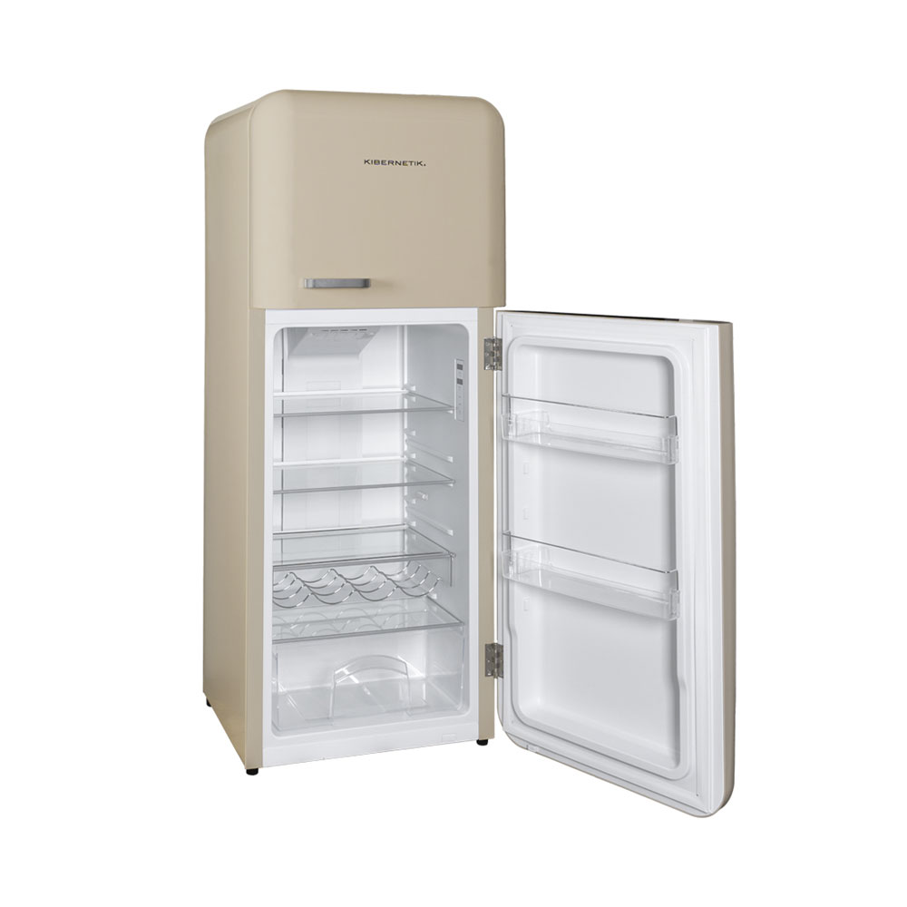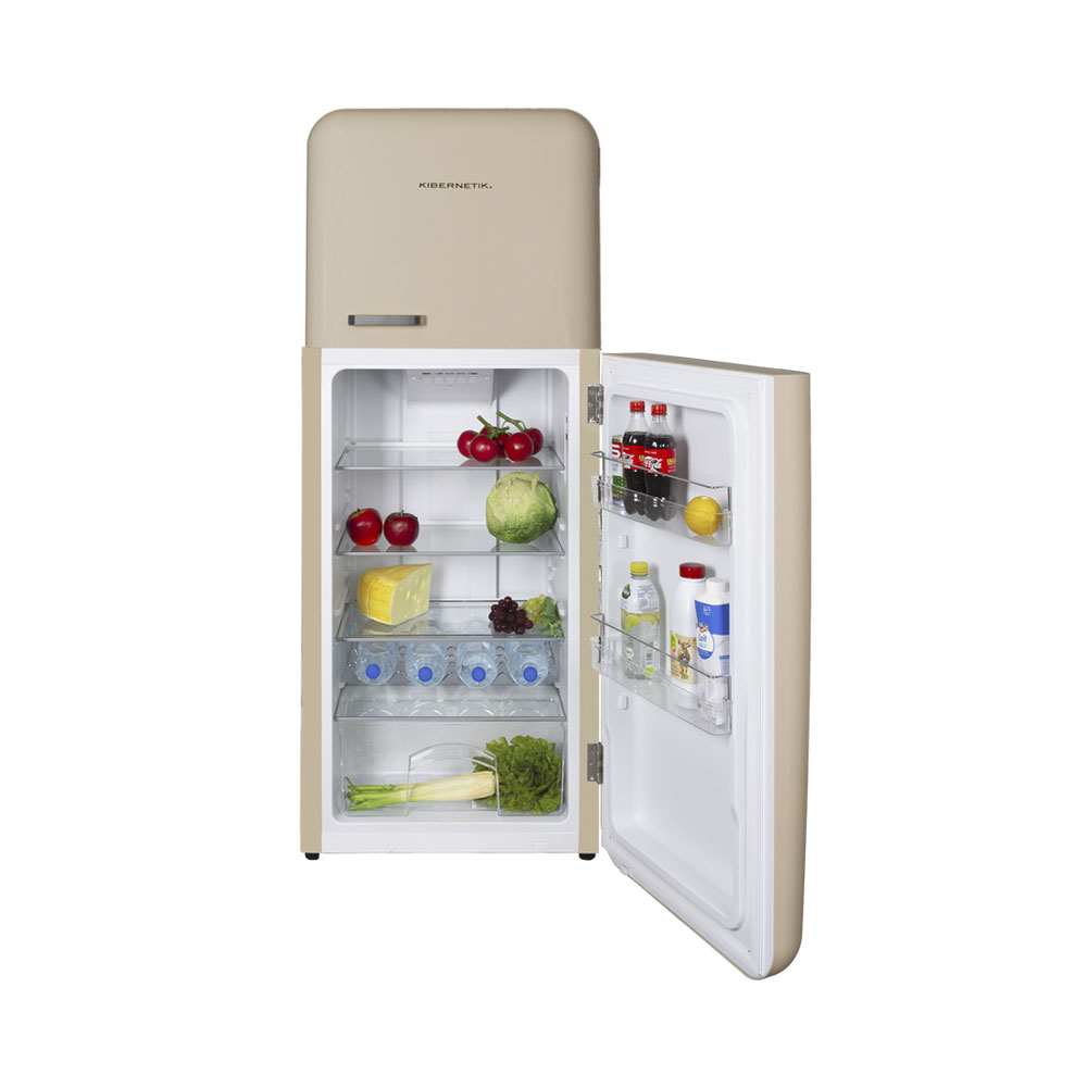 Der Kibernetik KSTK253 Retro Kühl-Gefrierkombination in Beige vereint nostalgischen Charme mit moderner Technik. Mit einem grosszügigen Fassungsvermögen von 237 Litern bietet dieses Retro-Kühlgerät ausreichend Platz für jegliche Lebensmittel. Die flexible Innenraumgestaltung und die benutzerfreundliche Temperaturregelung sorgen für optimalen Komfort. Die elegante beige Farbgebung macht die Kibernetik KSTK253 Kühl-Gefrierkombination zum stilvollen Highlight in jeder Küche. , , Produktinformation, Supermodus – schnelles Einfrieren, Kühlen und Gefrieren, Retro-Design, Grosszügiger Stauraum