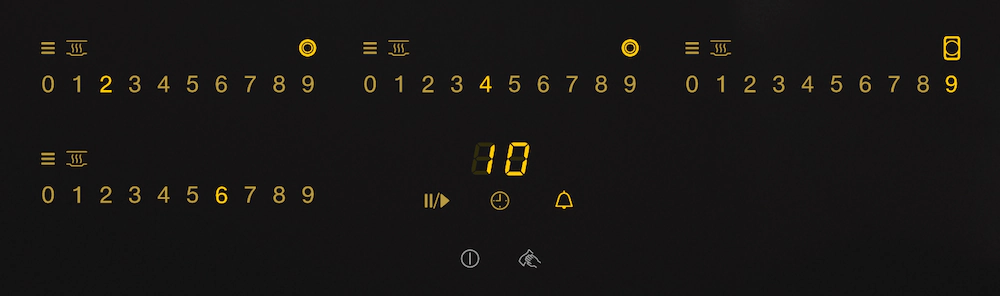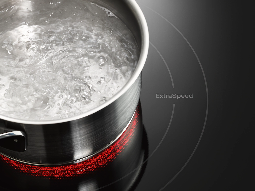 Edelstahlrahmen flach, Miele@home, Frontbedienung mit Sensortasten, 4 Kochzonen, davon 3 Variozonen / 1 Zone ExtraSpeed, Restwärmeanzeige für jede Kochzone, Sicherheitsausschaltung / Fehlerüberwachung, Inbetriebnahmesperre / Verriegelungsfunkt.
