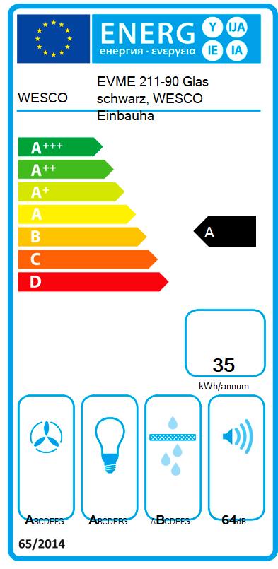 Wesco EVME 211-90 Abluft Glas schwarz, WESCO Einbauhaube, 4013494-020