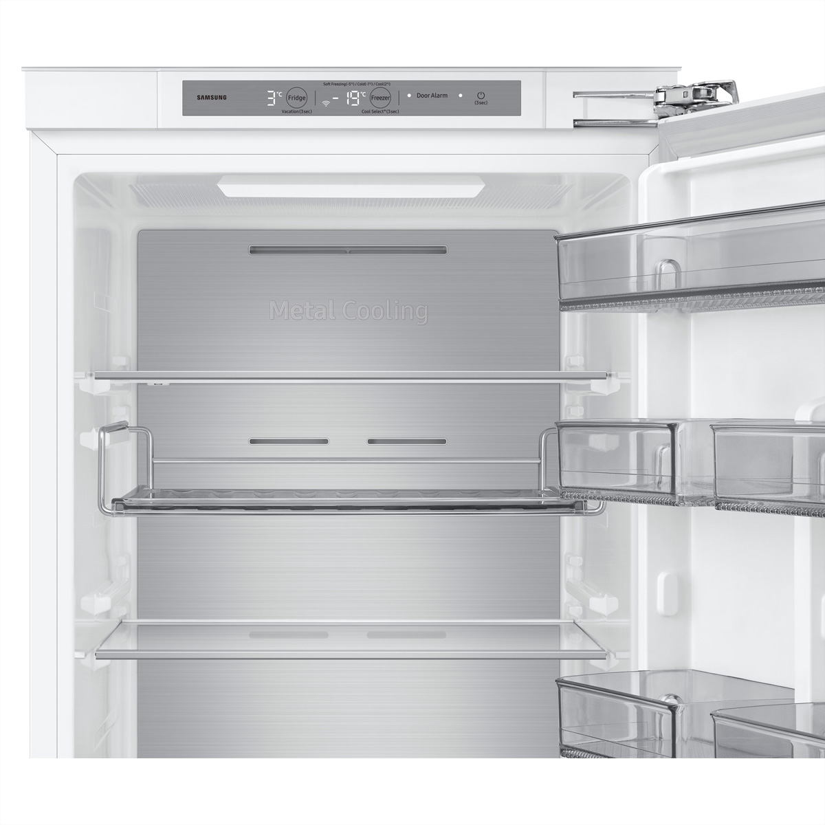 Mehr Platz innen, gleiche Masse aussen: SpaceMaxTM bietet bis zu 30 % mehr Nutzinhalt als vergleichbare Samsung Modelle mit gleichen Aussenmassen. Dieser Raumvorteil wird durch besonders dünne Gerätewände mit dennoch starker Isolierwirkung erzielt. Damit hast du mehr Lagerfläche im Innenraum, ohne dass der Kühlschrank selbst grösser oder die Energieeffizienz geringer wird.