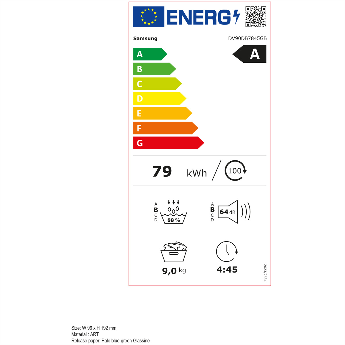 Der Samsung Wäschetrockner DV7400 bietet höchste Energieeffizienz mit der Klasse A, entfernt 99,9 % der Bakterien und Allergene dank des Hygiene Care Programms und passt die Trocknungszeit durch das intelligente OptimalDry™-System präzise an.