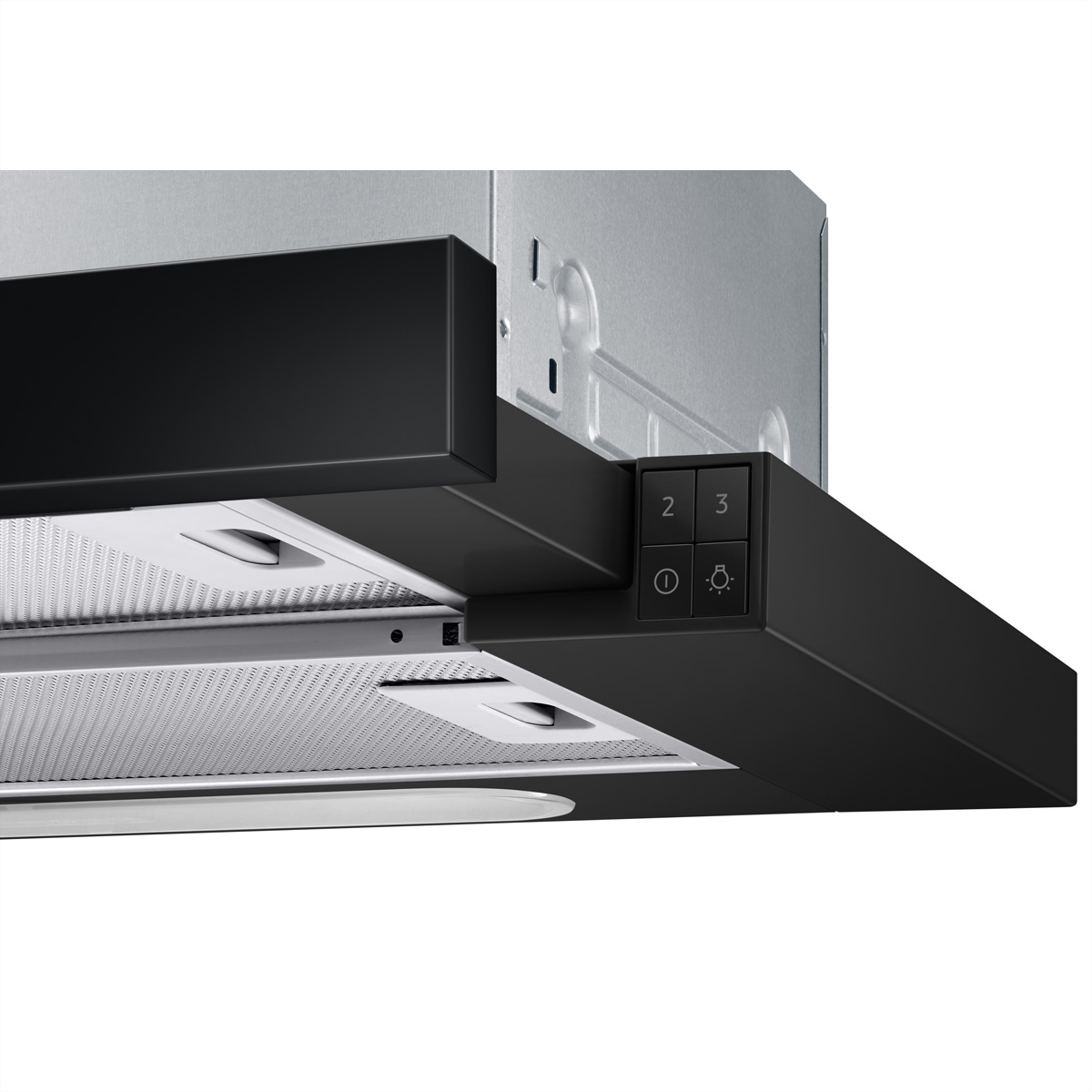 Der 60 cm breite Wand-Dunstabzug NK24M1030IB von Samsung sorgt mit drei einstellbaren Leistungsstufen für frische Luft beim Kochen.