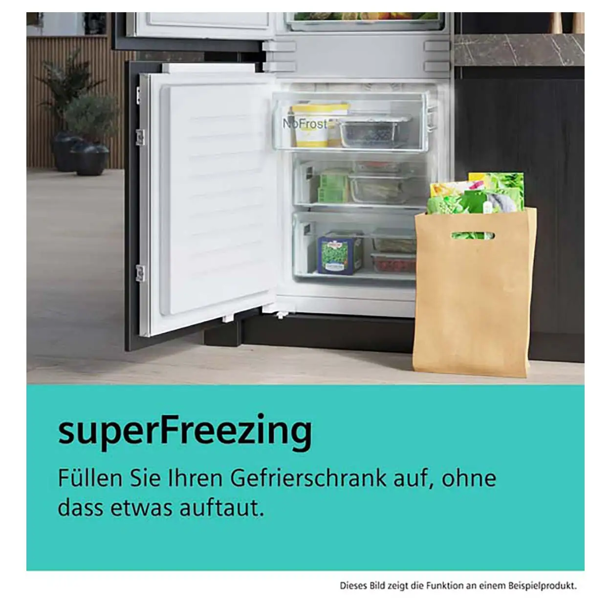 Perfekte Lagerung mit temperaturgeregeltem Gefrierfach, hyperFresh, LED-Beleuchtung, superCooling, autoAirflow, SoftClosing Door, safetyGlas-Ablagen, Dieser Siemens Einbaukühlschrank kombiniert fortschrittliche Technologie mit praktischem Design, um Ihre Lebensmittel stets optimal und effizient zu lagern. Perfekt für jeden Haushalt, der Wert auf Frische und Qualität legt.